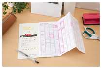 ■A4用紙がすっきり収まる ! ノートやメモ帳で多いのは、無意識のうちに書類を折って挟む使い方。この「A4×1/3サイズ」ノートは、実際にA4用紙を三つ折りにしたサイズよりもひと回り大きくなっているので、使用頻度が高い書類や重要なメールを挟んだり貼っておけば、いつでもキレイに見返せて仕事も効率的です。また、背クロスの部分が「三つ折り用のガイド」になっているので、ぴったり合わせるのが難しい三つ折りも簡単にできます。 |
