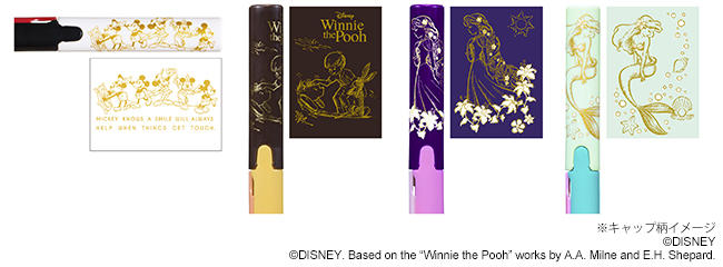 シンプルな絵柄が引き立つゴールドインクで印刷。エレガントで美しいデザインに仕上げました。年代別のミッキーがずらりと並んだゴージャスなデザインの「ミッキー スルーザイヤーズ」、映画のワンシーンを手書き調で描いた「くまのプーさん スケッチ」、お花に囲まれて佇むラプンツェルが女性らしい「ラプンツェル スケッチ」、少しアンニュイな表情が大人っぽい「アリエル スケッチ」の4種類のラインアップです。