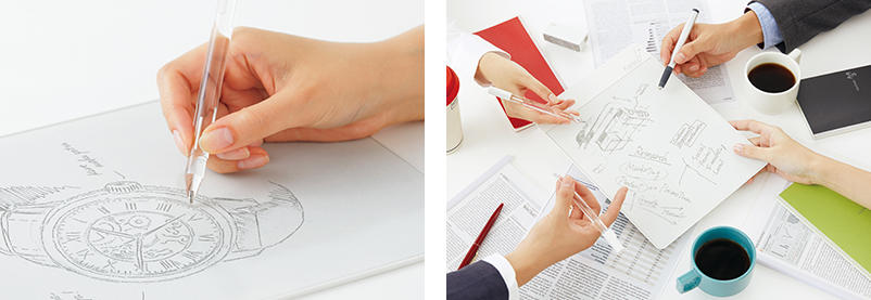 鉛筆のような滑らかな筆記性能はそのままに、太く見やすい線が書ける太字を新たに採用。従来の中字に加え、用途に合わせ太さをお選びいただけます。