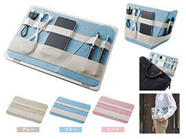 メーカー希望小売価格(税込)は、「ジリツする バンド式オーガナイザー」3,960円、「ナカ見え ガジェットポーチ」2,640円~3,300円、「マウスパッドになるPCケース」6,050円、「トビラ式収納 PCバッグ」8,690円、「自由ジザイに スマホスタンド」4,510円、「たたんでペタンコ スマホスタンド」1,980円です。