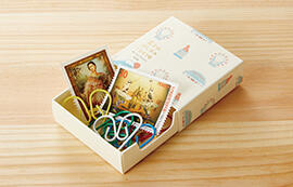 小箱は、中に入っている消しゴムケースの柄をパターン化したデザインで、手触り感のある高級紙を採用し、ゴールドの箔押しロゴをあしらった、ワクワク感いっぱいのギフトボックス仕様です。マッチ箱風のかわいらしいパッケージは、ちょっとしたプレゼントや日本のお土産にぴったり。
