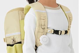 ショルダーベルトには、背丈に合わせた位置に防犯ブザーなどを取り付けられます。