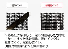 普通紙だけでなく、コート紙などつるつるした紙にもしっかり捺印できる光沢紙対応インクを搭載。宅配便のラベルはもちろん、レシートやATM用紙などの感熱紙、公共料金などの圧着はがき、ラミネート紙にも幅広く対応します。
