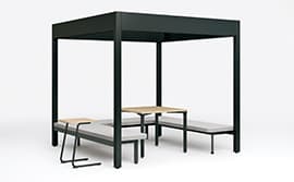どの方向からもアクセスしやすいベンチフレームは内向きにも外向きにも座ることができます。打ち合わせのほか、ランチ休憩やタッチダウンなど多目的に利用でき、活気の生まれやすい場所を提供します。