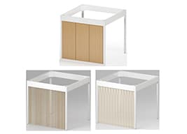 パネル、木製バーチカルブラインド、カーテンと3つのフレーム用オプションをラインアップ。空間内部のプライバシー度に応じて最適な遮へい感を選択できます。