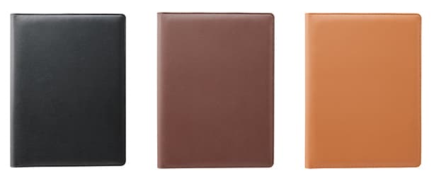本革に近い質感と柔らかさが特長のPU合成皮革。外側のシュリンク調と内側のスエード調の組み合わせが上品な印象を醸しだします。しっとり落ち着いたツヤや色目、ふっくらとした手触りと合わせて、革小物のような高級感を感じさせるデザインに仕上げています。お客様の前でお仕事をされる方に最適です。