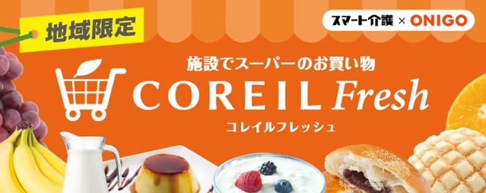 「COREIL Fresh(コレイルフレッシュ)」は、2025年1月からスタートした生鮮食品の当日配送サービスです。ネットスーパー「ONIGO」との連携により、午後3時までの注文で、近隣スーパーから生鮮食品などを当日中にお届けします。乳製品や果物、パン、プリンやアイスクリームなど約5,000品目を対象とし、一人ひとり仕分けされた状態で配送されるため、スタッフ負担も軽減。対象エリアは首都圏の一部から順次拡大中です。