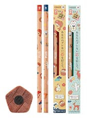 ・合格祈願のゲン担ぎ! 五角(合格)型を採用した2本入りの鉛筆セット。レトロポップな縁起物の柄をあしらいました。