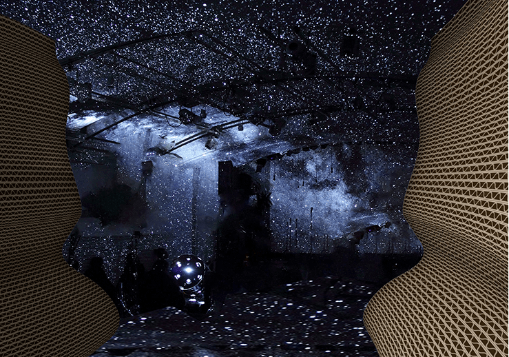 そのような思いからスタートするプロジェクト「人類にエソラゴトを」のコンセプトを体感できる場として、実験的に表現した「都市洞窟エソラゴト」を、2026年1月7日から、日比谷OKUROJI で、関係者のみの招待制にて限定公開いたします。都市洞窟エソラゴトは、常に先鋭的なプラネタリウムを生み出し続けるクリエーター大平貴之氏監修によるインスタレーションです。