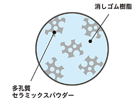 ■“いつもカドで消す感触”を実現した消しゴム樹脂