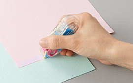 ラインアップは、Gray&Orange、Yellow&Green、Orange&Purple、Blue&Yellow、Purple&Greenの5種類。粘着性能は、さまざまな用途に対応するドット糊「しっかり貼れる」タイプです。メーカー希望小売価格(税込)は、本体+つめ替え用リフィルのセットで550円。親子での工作や学生のプリント貼りなどで消耗が早く、すぐに使えなくなることへの不安を解消し十分にご使用いただけるよう、本体とリフィルをお得なセットとして発売いたします。