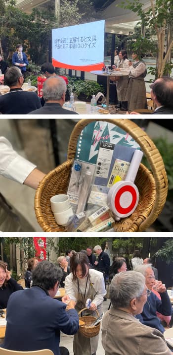 ほろ酔い気分の参加者の皆さまからは、プレゼントのプラスの文具もとても喜んでいただけたたようです。