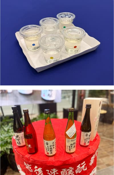 飲み比べていただくのは5種類の日本酒です。蓋付のカップにシールの目印をつけてお配りします。