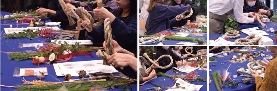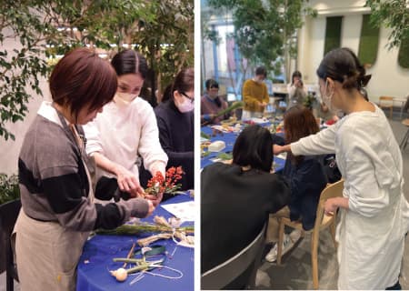 そんなクリスマスムード全開の中、“新年を寿ぐ”生花でつくるお正月飾りワークショップをセンタープラザ2階SALONにて開催しました。