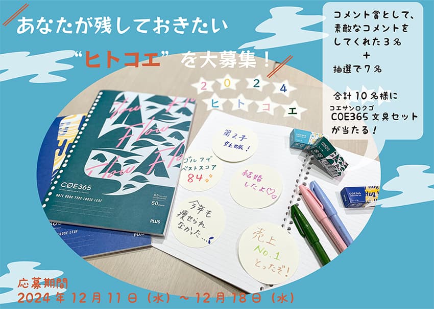 COE365(コエサンロクゴ)にちなんで、2024年の一年365日を振り返って「あなたが残しておきたい一声(ヒトコエ)」を大募集!