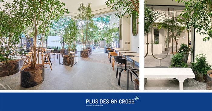 SALONは、恵比寿ガーデンプレイスセンタープラザ2Fにあるプラス株式会社 ファニチャーカンパニーのオフィス「PLUS DESIGN CROSS」の中央に位置する、イベントスペースになります。