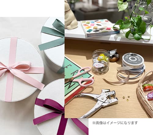 今回は、”Present for 〇〇” ということで、ギフト用のラッピングもご用意いたします。小箱を彩るリボンや、一言添えられるメッセージカードなどでおめかしして、ぜひかわいく仕上げてくださいね。