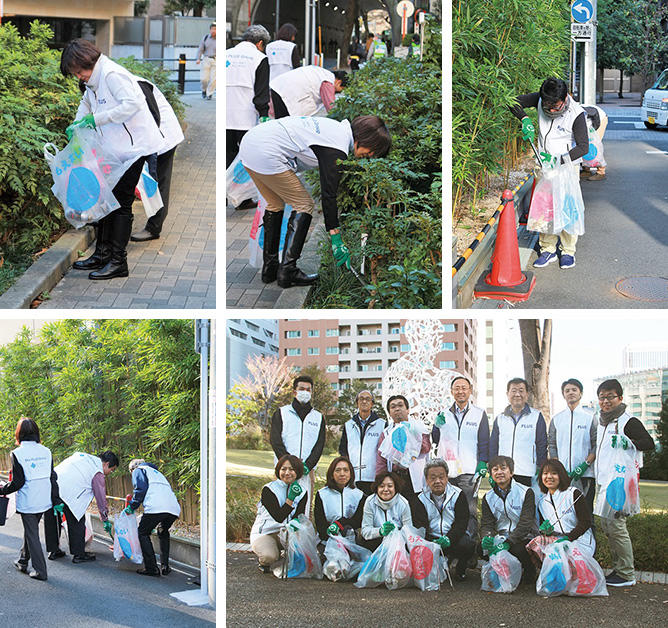 プラスからは、市ヶ谷オフィスより社員11名、五番町オフィスより社員13名が参加、市ヶ谷オフィスから市ヶ谷駅、五番町オフィスから四ツ谷駅にかけての清掃を行いました。