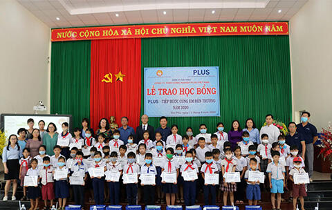 ベトナム工場(PLUS VIETNAM INDUSTRIAL CO., LTD./ベトナム:ドンナイ省)は、ベトナム国内の小学生を支援する「PLUS Vietnam Scholarship(プラス ベトナム スカラーシップ)」において、2020年度も100名の奨学生を決定し、9月11日にTan Phu(タンフー)県、18日にThong Nhat(トンニャット)県にて奨学金授与式を行いました。