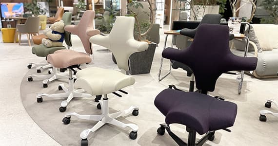 ユニークな十字のフォルムが目を引くノルウェーHAG(ホーグ)社のCapisco(カピスコ)チェア。CREATORE with PLUS@yebisuが国内で一番多く展示しています。