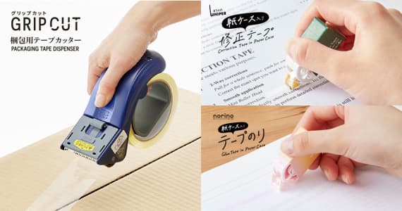 梱包用テープカッター「グリップカット」と「ホワイパー 紙ケース入り修正テープ」「ノリノ 紙ケース入りテープのり」が2024年日本文具大賞の優秀賞を受賞しました。