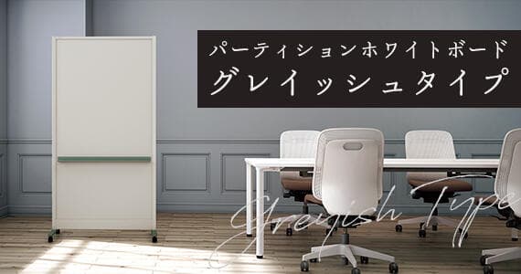 他のインテリアカラーとも相性が良く、かつ筆記内容もしっかり視認できるグレーの板面と、トレイ・脚には上品なグレイッシュカラーをアクセントに採用した、シックな雰囲気で洗練された空間を演出できるパーティションホワイトボードです。