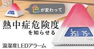 室内の熱中症対策に!ピラミッド型本体のLEDカラーが4色に変化して室内の熱中症の危険度を分かりやすくお知らせする「温湿度LEDアラーム」を、3月28日に発売しました。