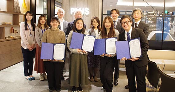2013年にプラスが青山学院大学との提携により創設した、ベトナムからの留学生を支援する『PLUS・AGUベトナムスカラーシップ』。2023年度は4名を対象とし、奨学金授与式を行いました。