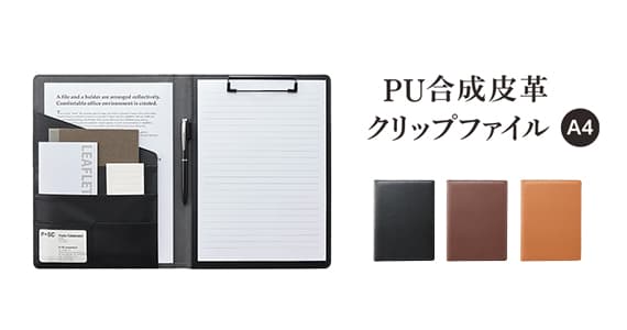 上品な質感のPU合成皮革を採用し、高級感と収納力を両立させた「PU合成皮革クリップファイル」を9月22日に発売します。(プラスダイレクトショップおよびAmazonにて)